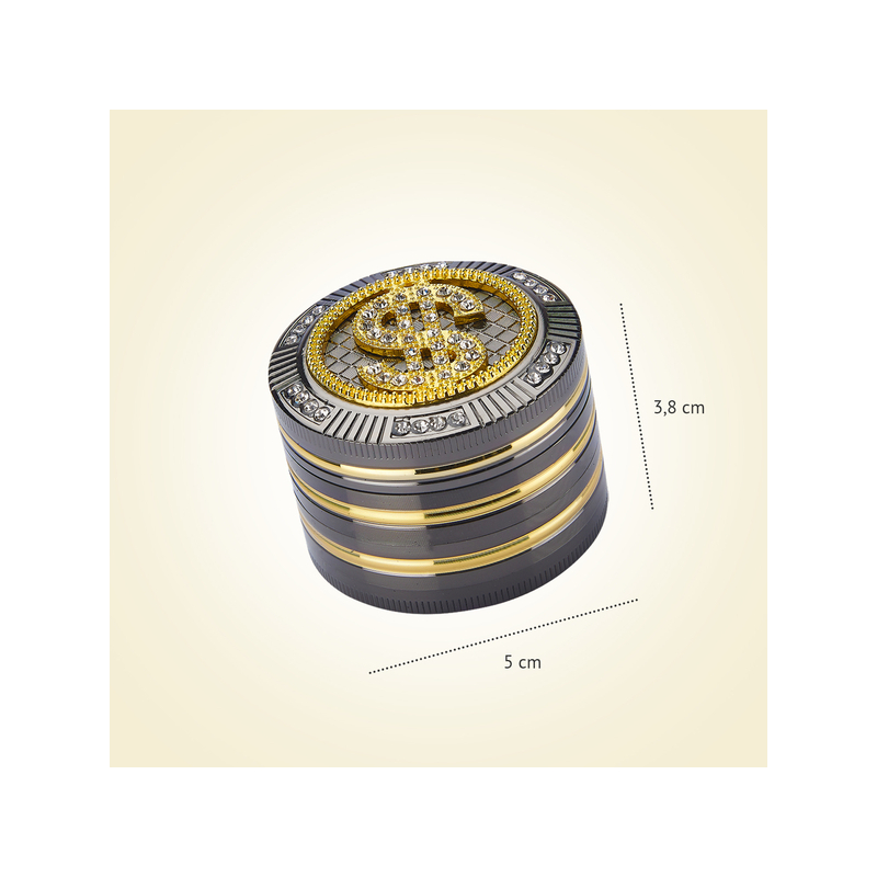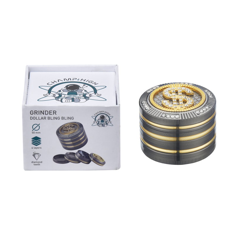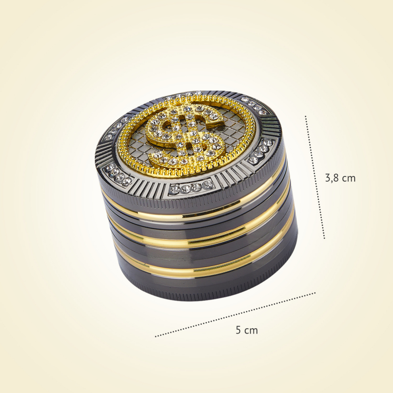 Le Grinder Bling Bling Dollar Champ High est bien plus qu'un simple accessoire pour broyer vos herbes. C'est un chef-d'œuvre scintillant qui ajoute une touche de luxe et d'éclat à votre collection.Caractéristiques clés :Produit :Dimension (cm) : 5.0 x 5.0 x 3.8Poids (kg) : 0.135EAN : 3661075211240Code intrastat : 8205510000CsuDimension (cm) : 7.4 x 7.4 x 5.5Poids (kg) : 0.195