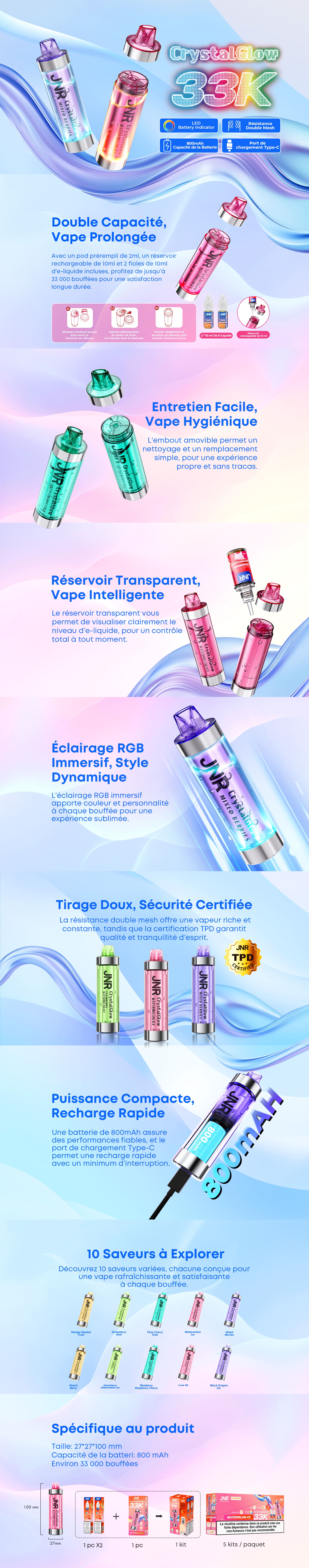 Découvrez la nouvelle gamme de JNR, la puff pod CRYSTAL GLOW 33K !